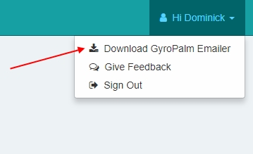 The supplementary GyroPalm Emailer Windows application can be downloaded by clicking the top-right menu with a button called Download GyroPalm Emailer.
