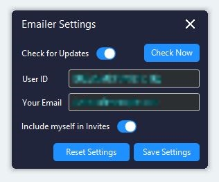 Click the "cog icon" on the top-right of the app. In Emailer Settings, provide your User ID, which can be found in the Zoom Settings tab. Do not disclose this information as it is your personal identifier.